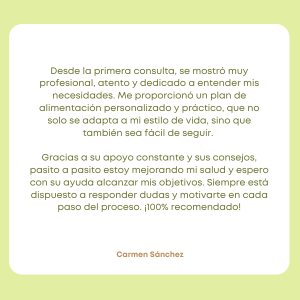 Mi metodología combina personalización, seguimiento y educación nutricional práctica, para que puedas avanzar con claridad y confianza.